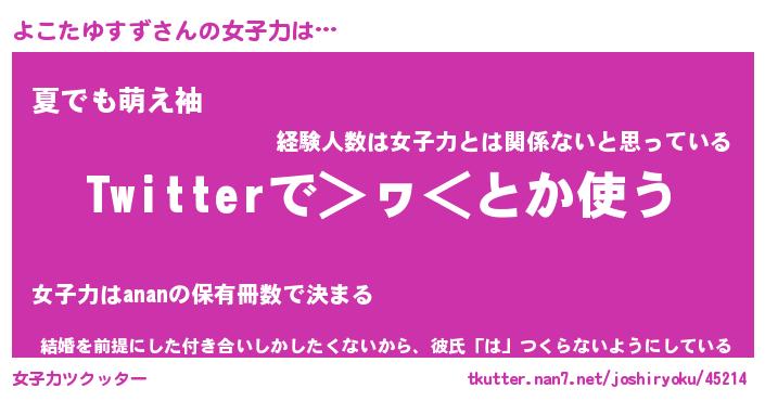 | 恥ずかしいあだ名 | 『プリティーよこたゆすず』『よこっちょ』 |