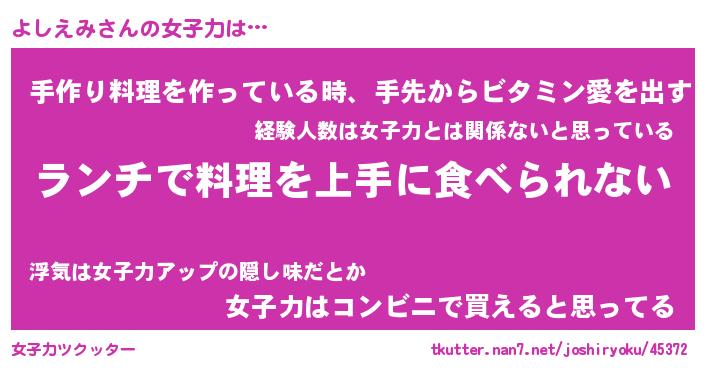 | 意味不明あだ名 | 『ペロリンよしえみ』『永久保存よしえみ』 |