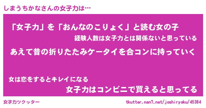 | 恥ずかしいあだ名 | 『プリティーしまうちかな』『しまっちょ』 |