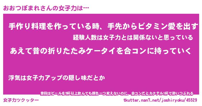 | ヘコむあだ名 | 『おおにゅー』『豆乳』『おおっ子』 |