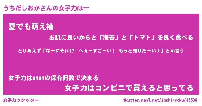 | ヘコむあだ名 | 『うちもー』『なまこ酢』『うち太郎』 |