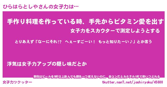 | ヒーロー風カッコイイあだ名 | 『スーパーヒラハラトシヤ』 |