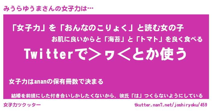 | ヘコむあだ名 | 『みうにー』『酢こんぶ』『みうお』 |