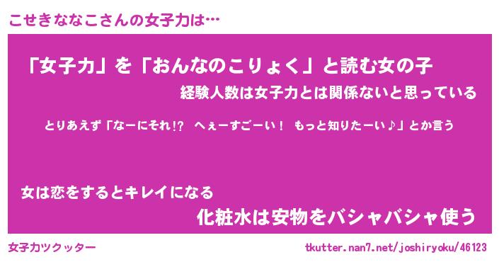 | ヒーロー風カッコイイあだ名 | 『スーパーコセキナナコ』『魔戒騎士コセ』 |