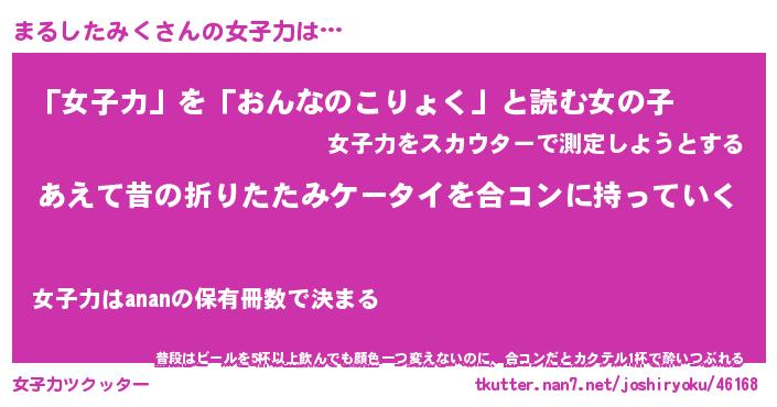 | ヘコむあだ名 | 『まるっふぃ~』『つくし』 |