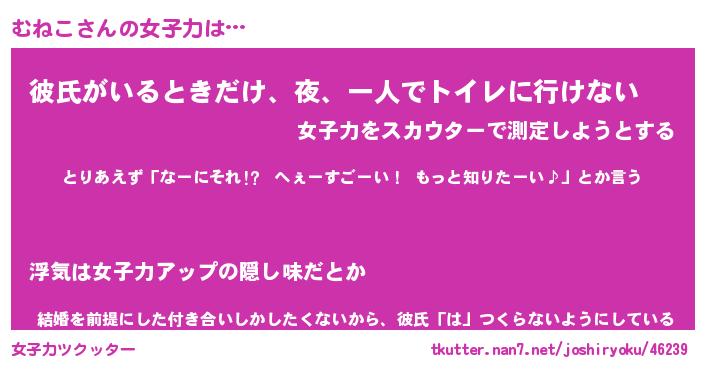 | ヘコむあだ名 | 『むねにー』『豆乳』『むねっちょ』 |