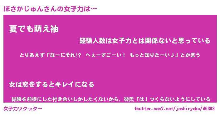 | ヒーロー風カッコイイあだ名 | 『スーパーホサカジュン』『魔戒騎士ホサ』 |