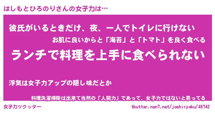 | ヘコむあだ名 | 『はしにゅー』『豆乳』『はし太郎』 |