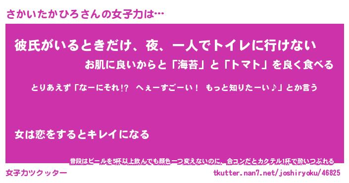 | 恥ずかしいあだ名 | 『プリティーさかいたかひろ』『さかちん』 |
