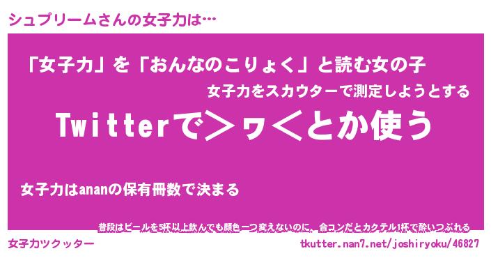 | 男性向けラノベタイトル風あだ名 | 『シュプリームの憂鬱』 |