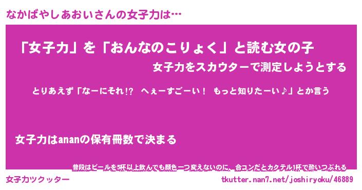 | 胡散臭い通販商品みたいなあだ名 | 『モテモテ間違いなしブレスレット…その名も「なかばやしあおい」』 |