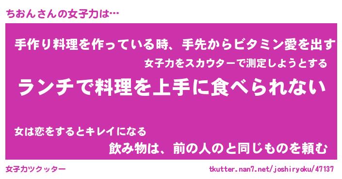 | ヘコむあだ名 | 『ちおもー』『つくし』『ちお太郎』 |