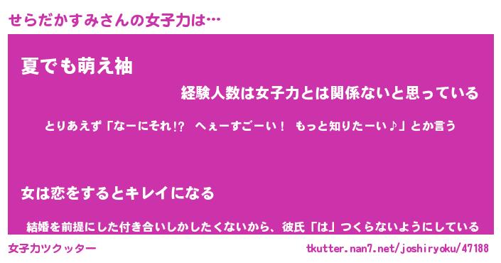 | 恥ずかしいあだ名 | 『プリティーせらだかすみ』『せらっちょ』 |