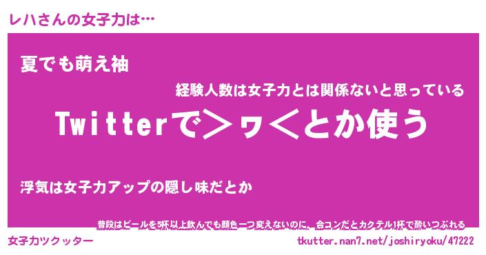| ヘコむあだ名 | 『レハふぇ~』『酢こんぶ』『レハお』 |