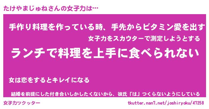 | ヘコむあだ名 | 『たけにー』『つくし』『たけっぺ』 |