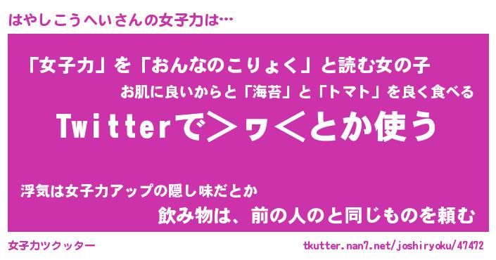 | 女子向けラノベタイトル風あだ名 | 『はやしこうへい姫と円卓の騎士』 |