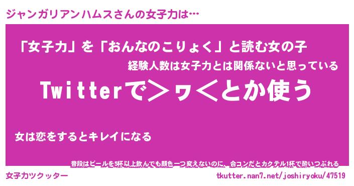 | ヘコむあだ名 | 『ジャにゅー』『レバニラ』 |