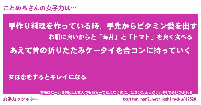 | 意味不明あだ名 | 『ペロリンことめろ』『永久保存ことめろ』 |
