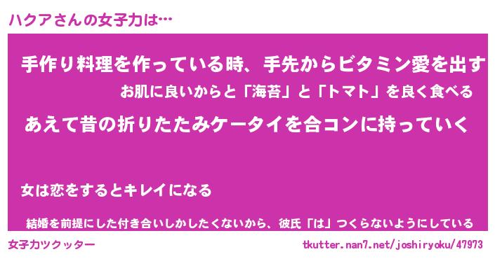 | ヘコむあだ名 | 『ハクにゅー』『つくし』『ハクっぺ』 |