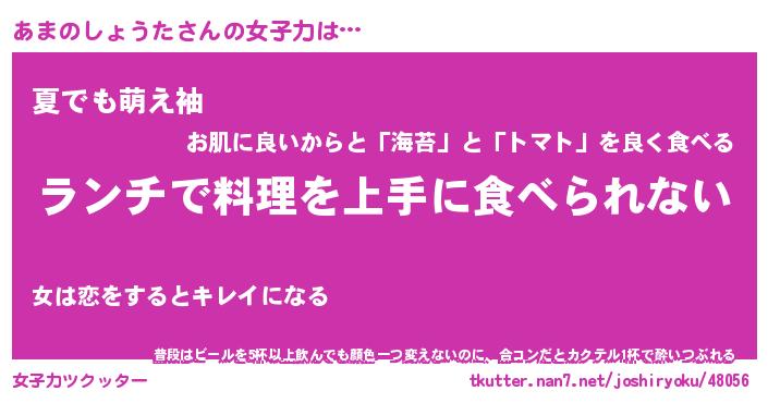 | 料理風あだ名 | 『ネギたっぷりあまのしょうたの南蛮漬け』 |