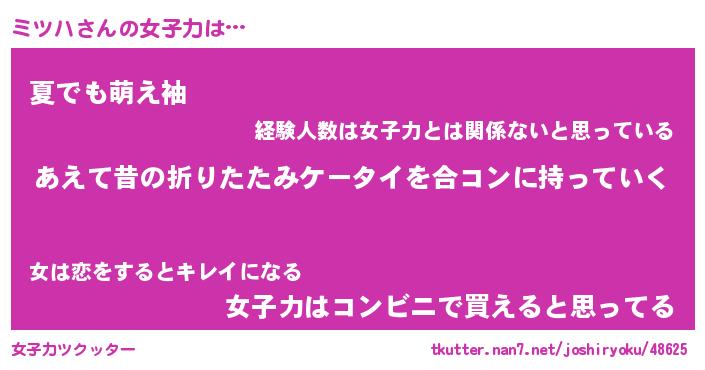 | ヘコむあだ名 | 『ミツふぇ~』『なまこ酢』 |