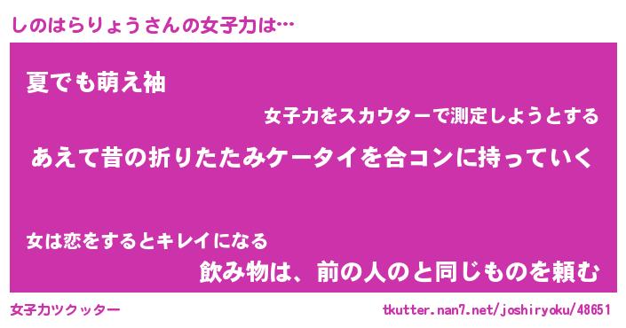 | ヘコむあだ名 | 『しのにゅー』『なまこ酢』 |