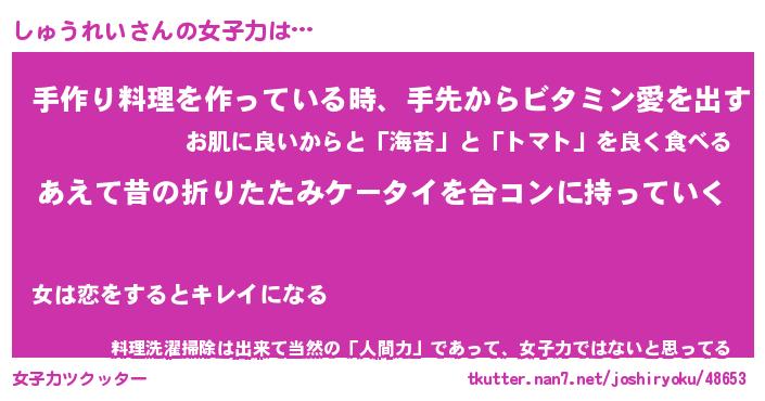 | ヘコむあだ名 | 『しゅっふぃ~』『牛乳』『しゅ太郎』 |