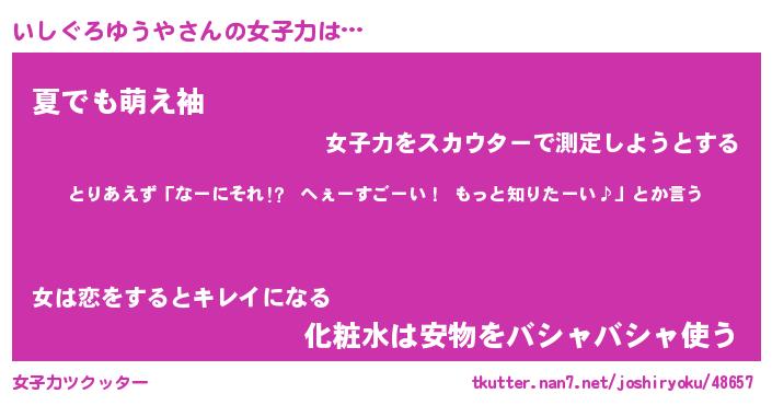 | 恥ずかしいあだ名 | 『プリティーいしぐろゆうや』『いしちん』 |