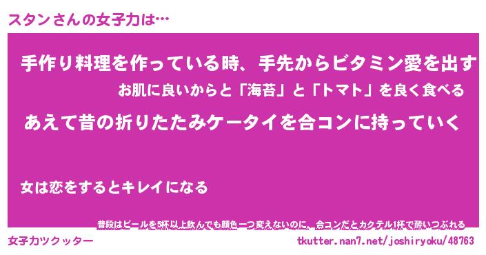 | 恥ずかしいあだ名 | 『プリティースタン』『スタっちょ』 |