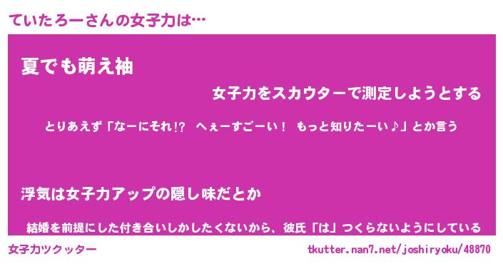 | 女子向けラノベタイトル風あだ名 | 『ていたろー姫と円卓の騎士』 |