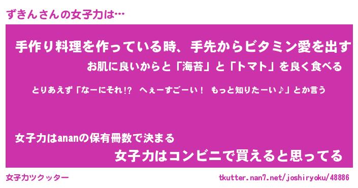 | ヘコむあだ名 | 『ずきにー』『豆乳』『ずき太郎』 |