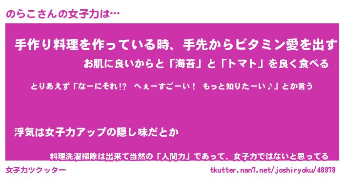 | 意味不明あだ名 | 『ペロリンのらこ』『のらこフォーエバー』 |