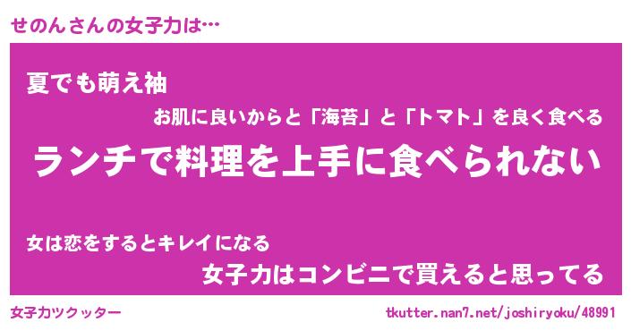 | ヘコむあだ名 | 『せのにゅー』『なまこ酢』『せのを』 |