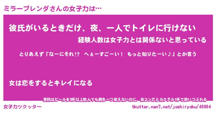 | ヘコむあだ名 | 『ミラっふぃ~』『なまこ酢』 |