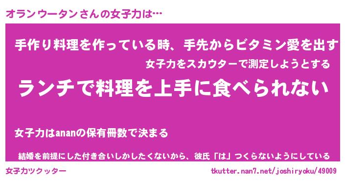 | 料理風あだ名 | 『ネギたっぷりオランウータンの南蛮漬け』 |
