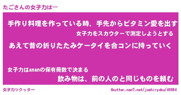 | ポケモン風あだ名 | 『タゴチュウ』『タゴダネ』『ヒタゴ』 |