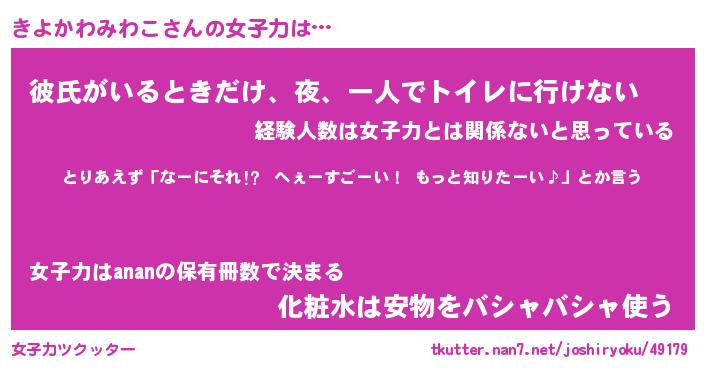 | 恥ずかしいあだ名 | 『プリティーきよかわみわこ』『きよちん』 |