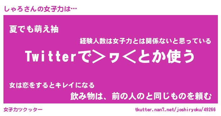 | ヘコむあだ名 | 『しゃにー』『なまこ酢』『しゃお』 |