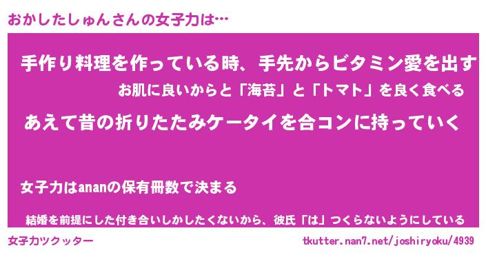 | ヘコむあだ名 | 『おかもー』『つくし』『おかっぺ』 |