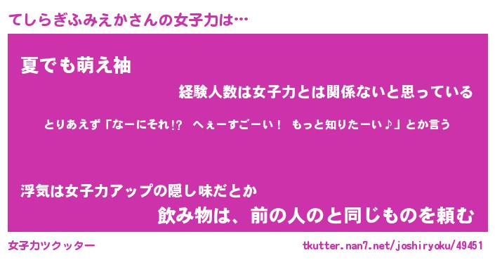 | 肩書あだ名 | 『てしらぎふみえか店長』 |