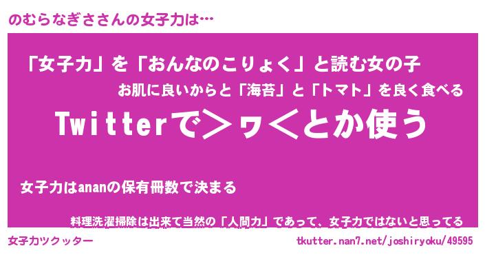 | 女子向けラノベタイトル風あだ名 | 『(仮)のむらなぎさのやんごとなき事情』 |