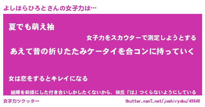 | 胡散臭い通販商品みたいなあだ名 | 『必ず成功するブレスレット…その名も「よしはらひろと」』 |