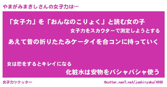 | 女子向けラノベタイトル風あだ名 | 『(仮)やまがみまきしのやんごとなき事情』 |