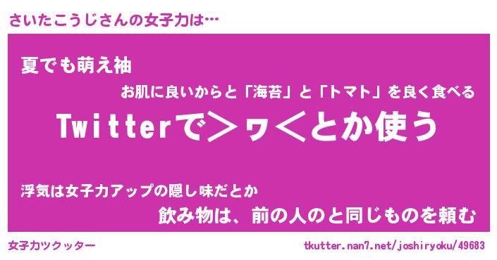 | 胡散臭い通販商品みたいなあだ名 | 『モテモテ間違いなし霊験あらたかなお札…その名も「さいたこうじ」』 |