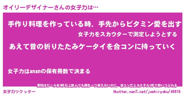 | 胡散臭い通販商品みたいなあだ名 | 『必ず成功する霊験あらたかなお札…その名も「オイリーデザイナー」』 |