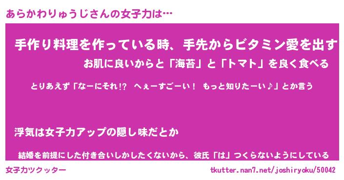 | 女子向けラノベタイトル風あだ名 | 『あらかわりゅうじ姫と円卓の騎士』 |