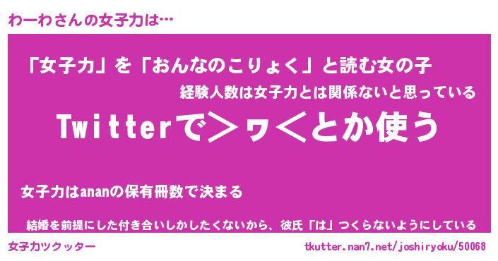 | 男性向けラノベタイトル風あだ名 | 『わーわの憂鬱』 |