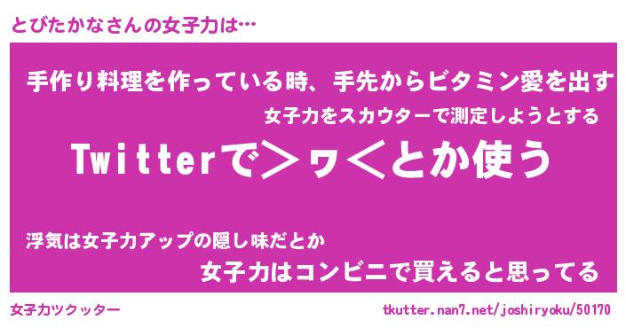 | ヘコむあだ名 | 『とびっふぃ~』『豆乳』『とびお』 |
