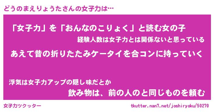 | ヘコむあだ名 | 『どうふぇ~』『なまこ酢』 |