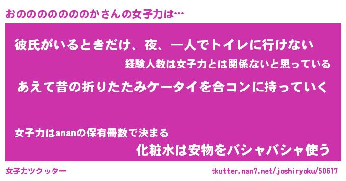 | 女子向けラノベタイトル風あだ名 | 『(仮)おのののののののかのやんごとなき事情』 |